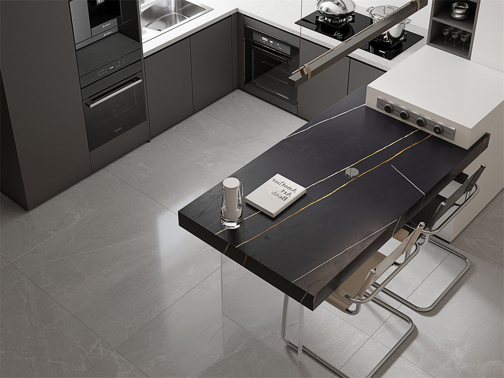 فرض کنید که تمام روز سخت کار کرده اید، وقتی به خانه برمی گردید و درب حمام را باز می کنید، خواهید دید که کف و دیوار پشت حمام از سنگ های زیبا ساخته شده است.بافت ساده سلاخ های سنتر شده مات و رنگ سیاه، فضای لوکس را به حمام اضافه می کند.وقتی موهایتان را می شویید متوجه خواهید شد که حال و هوای شما شاد می شود چون می توانید استرس را رها کنید و مشکلات خود را در محیط خوب ایجاد شده توسط صفحه سنگ سنتر شده پایدار فراموش کنید.قابل ذکر است که تزئین حمام با سلاخ های بزرگ می تواند از زندگی زیبا لذت ببرید.